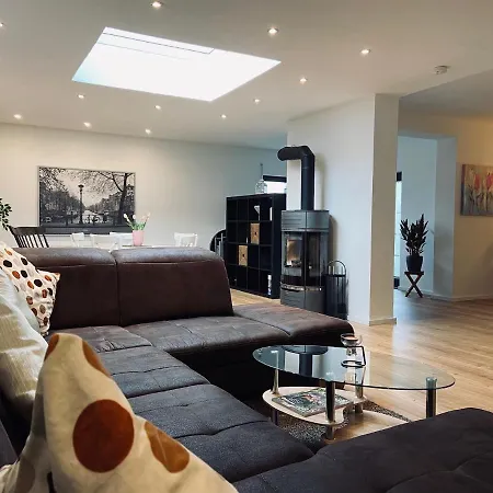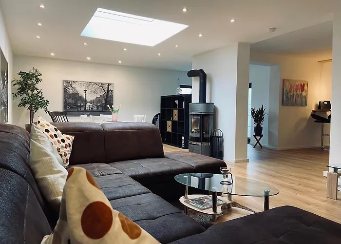 Wenn Sie einen frühen Flug aus Haiger haben, liegt das 105 m^2 große Apartment Ferienwohnung Tulpenweg mit Kaminofen 115 km vom Flughafen Frankfurt am Main entfernt. Außerdem gibt es in dem 1-Zimmer-Apartment eine Terrasse mit Blick auf die Straße.